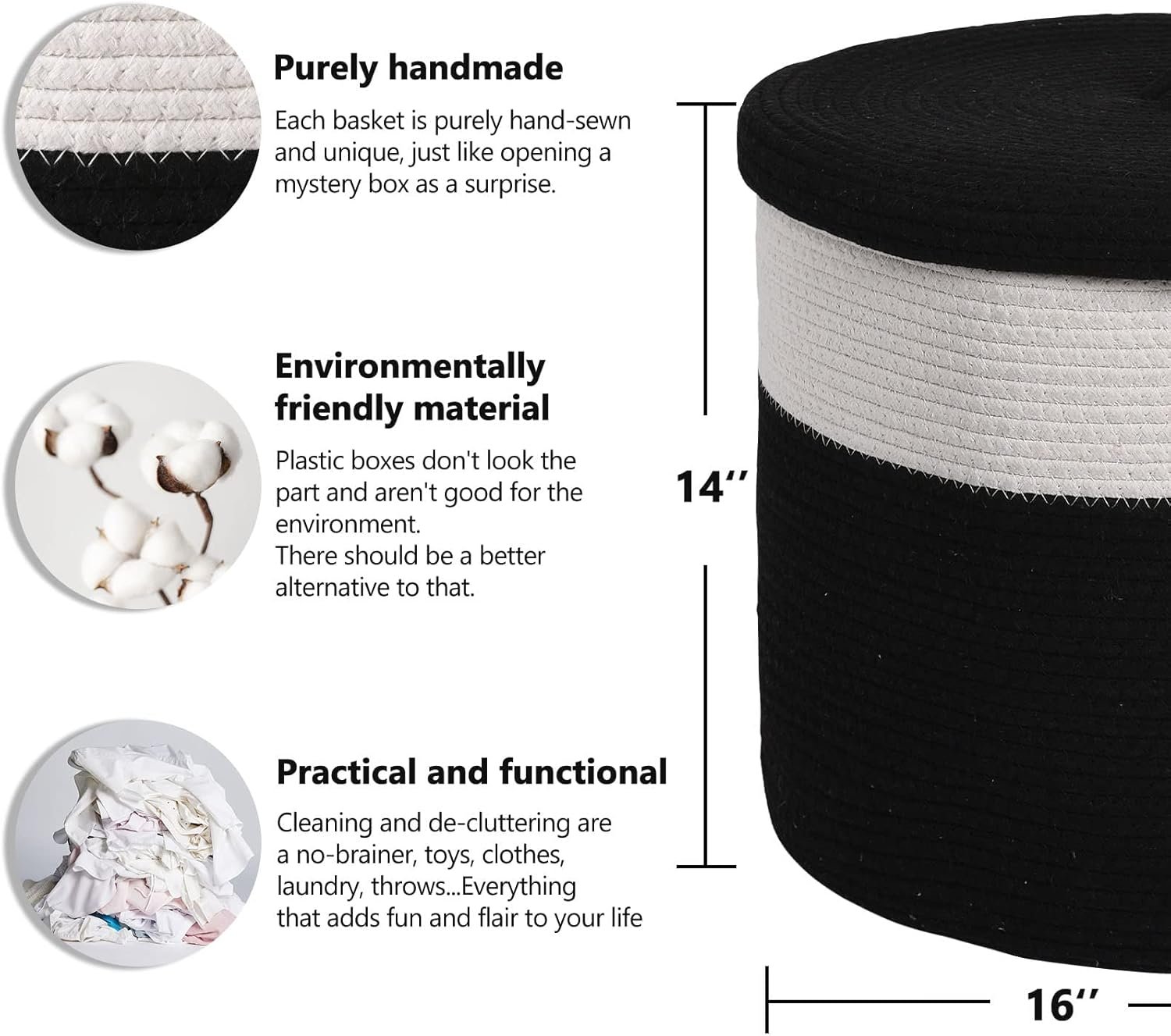 Crafted from 100% natural cotton rope, this basket is eco-friendly, soft yet sturdy, and safe for families with kids or pets. The secure lid keeps your items dust-free and out of sight, making it ideal for the bedroom, nursery, laundry area, or bathroom. With reinforced hidden handles, it’s easy to carry around.